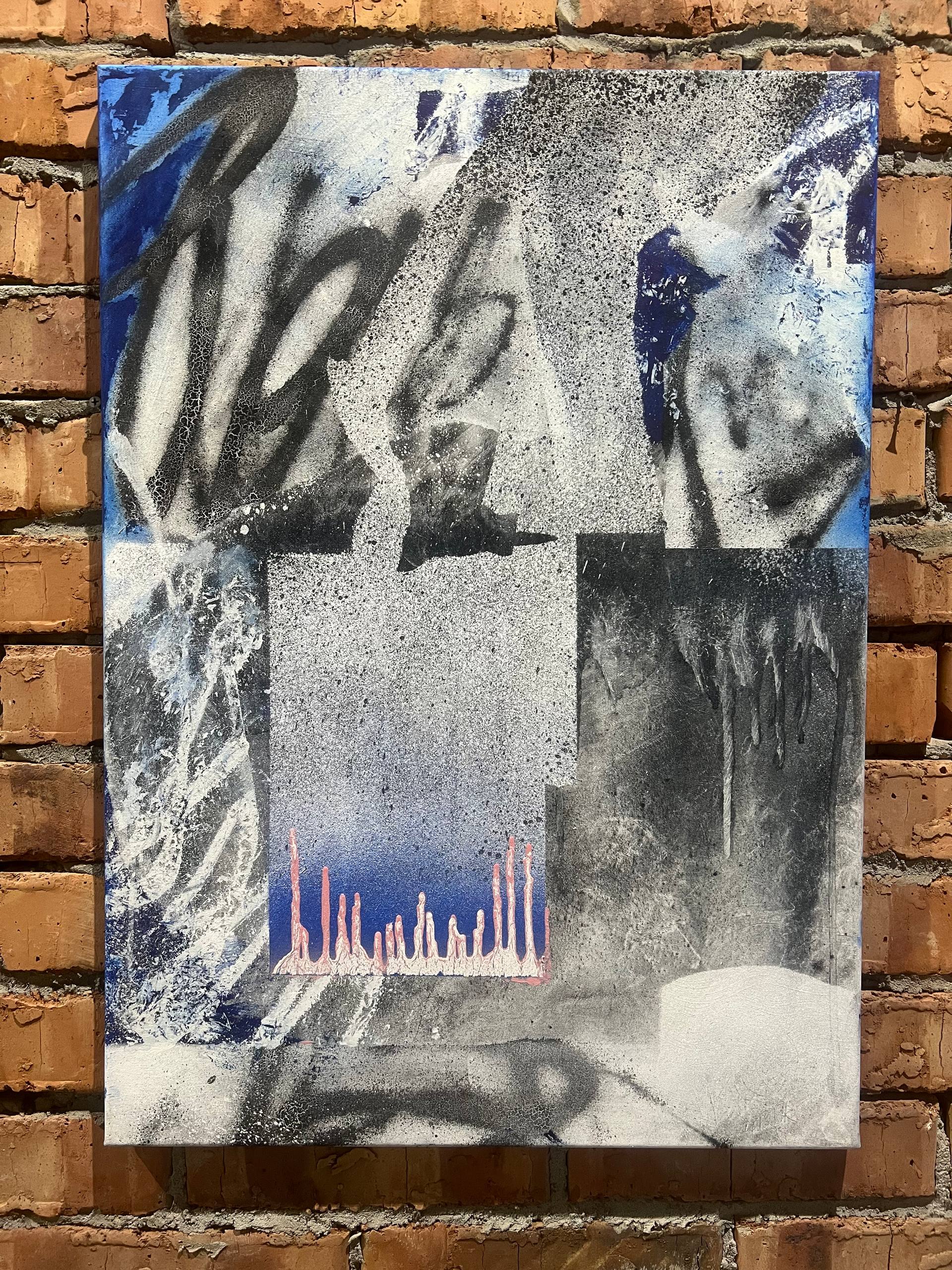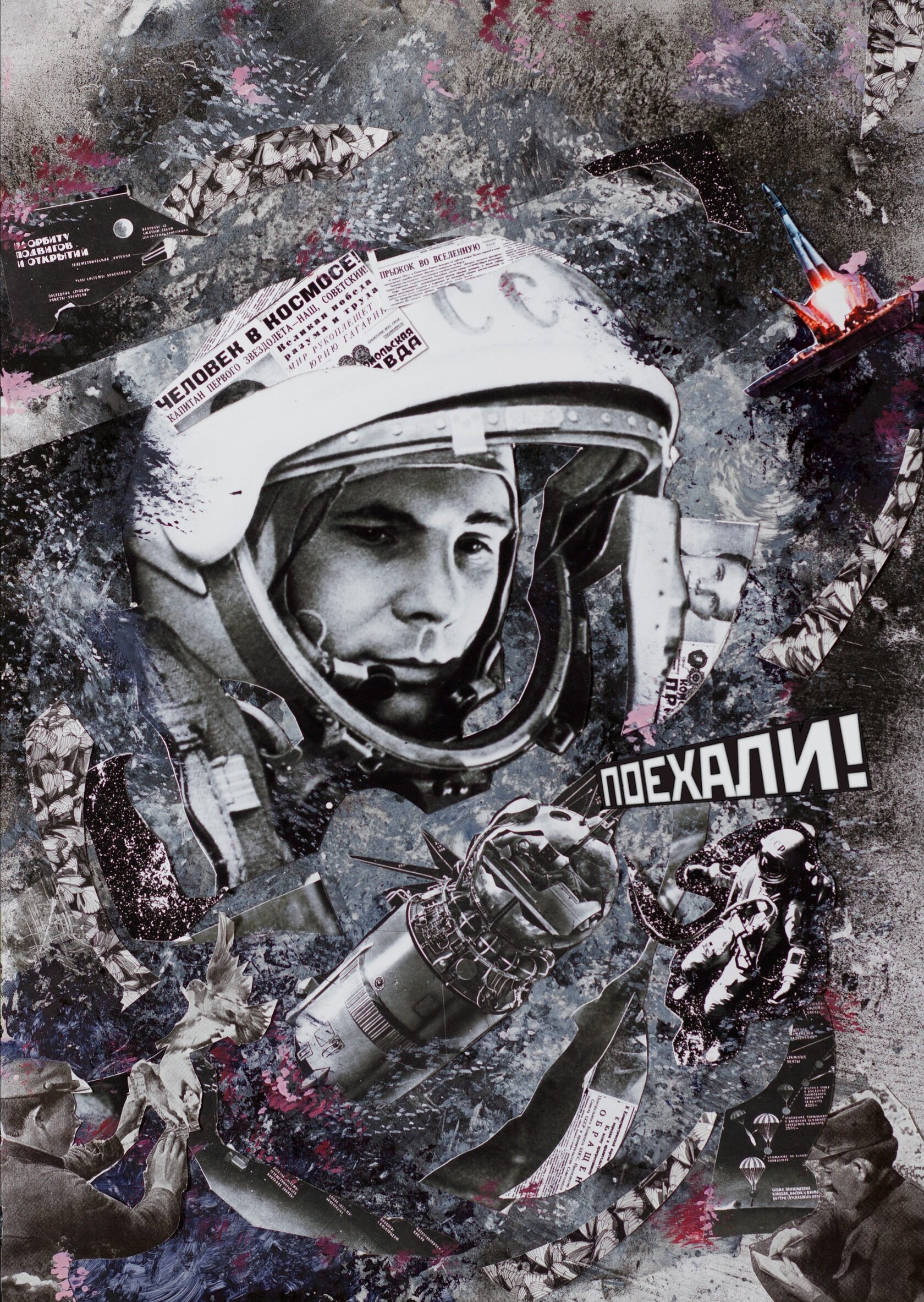 Год создания 2023. Холст 60х80, масло, акрил, аэрозоли, вырезки из советских журналов.