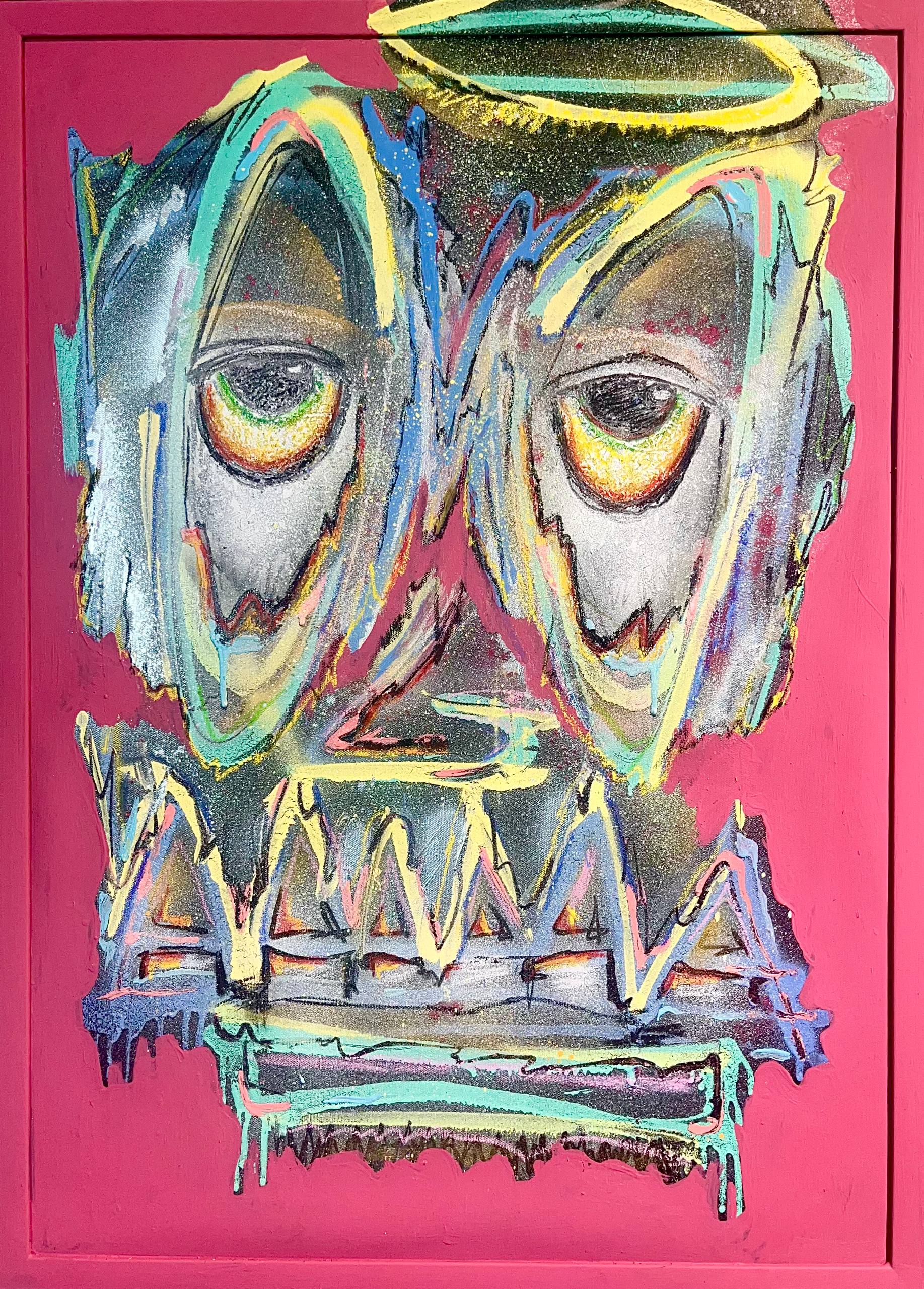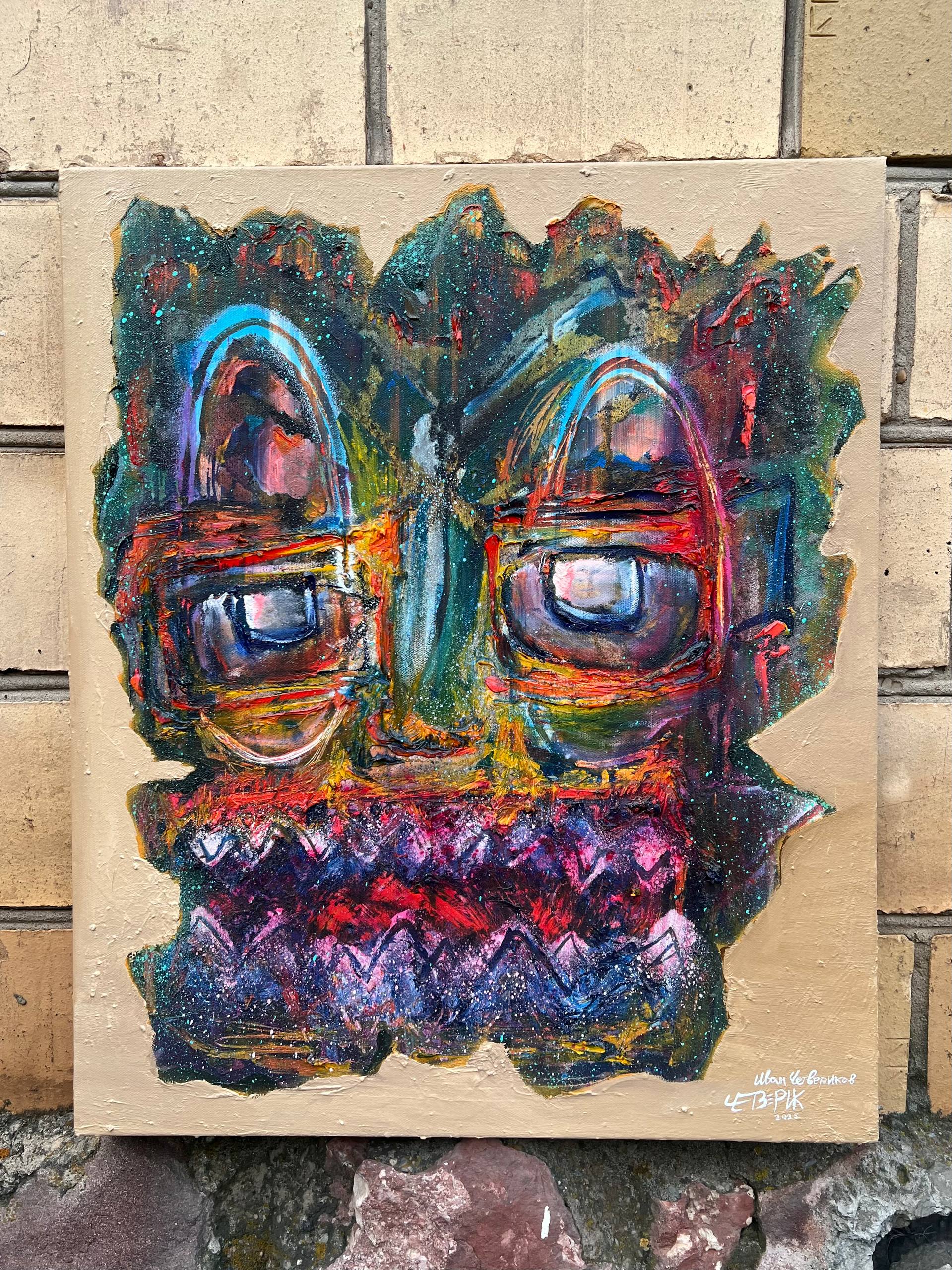 Выполненные на стыке граффити и неоэкспрессеонизма лица, как отражение многообразия внутреннего мира и большой палитры эмоций. Созданы в импровизации, в авторской технике смешанными материалами. Они как духи обереги от злых сил - защищают пространство от негативной энергии.